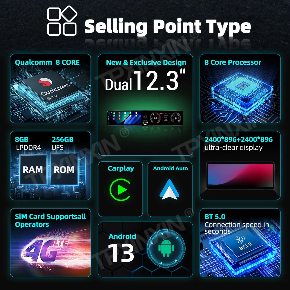 Android System with App Support – Built‑in Android OS lets you download apps, customize your system, and expand functionality beyond CarPlay and Android Auto.