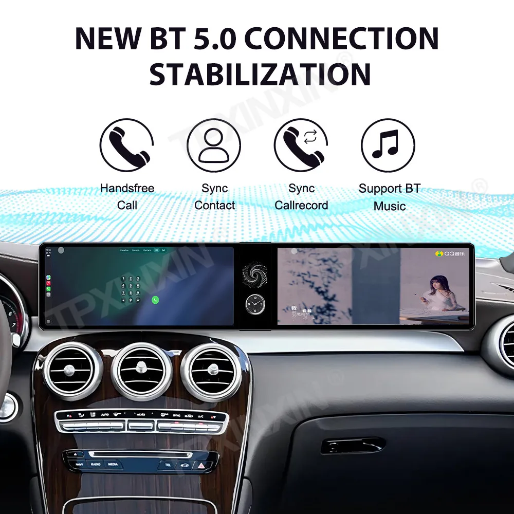 Stock infotainment systems in C‑Class and GLC models from 2015–2021 often lack modern smartphone integration, large widescreen displays, and seamless app connectivity. This premium 24.6″ dual HD touchscreen brings full wireless CarPlay, Android Auto, AirPlay, Android apps, navigation, multimedia, and connectivity — all through a stylish display that feels like a factory upgrade and enhances your daily driving experience.