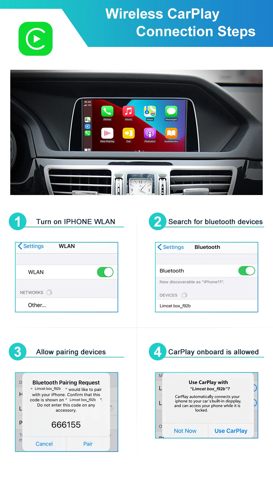 wireless carplay Connection Steps: