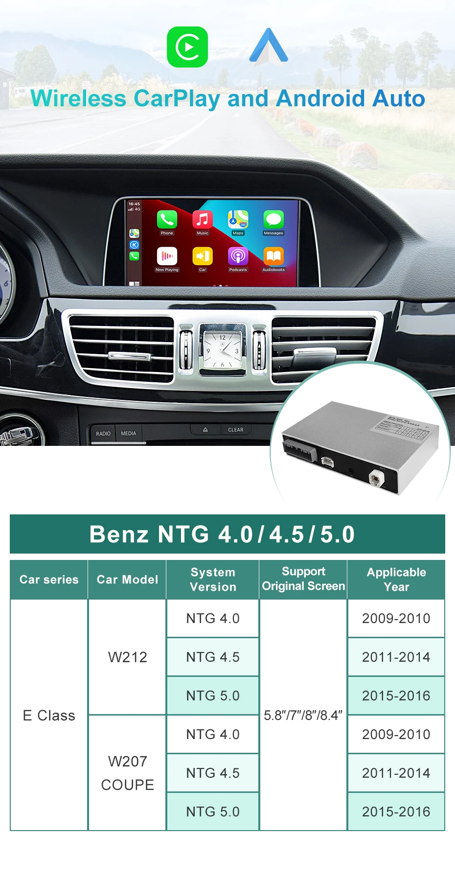 Mercedes Benz Wireless CarPlay Android Auto Multimedia Module for NTG 4.0 C-Class W204, E-Class W212/C207, GLK-Class X204, CLS-Class W218, SLS-Class R197/C197