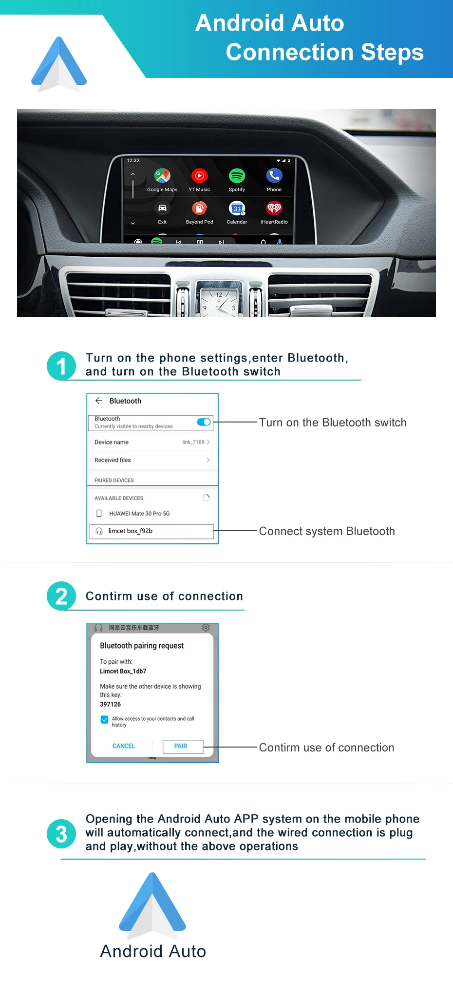 Android Auto carplay Connection Steps: