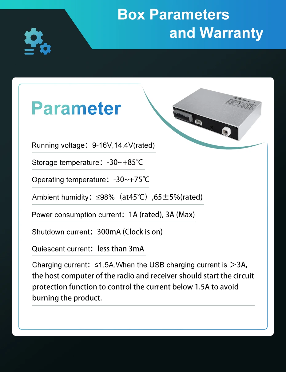 Product parameters and warranty terms